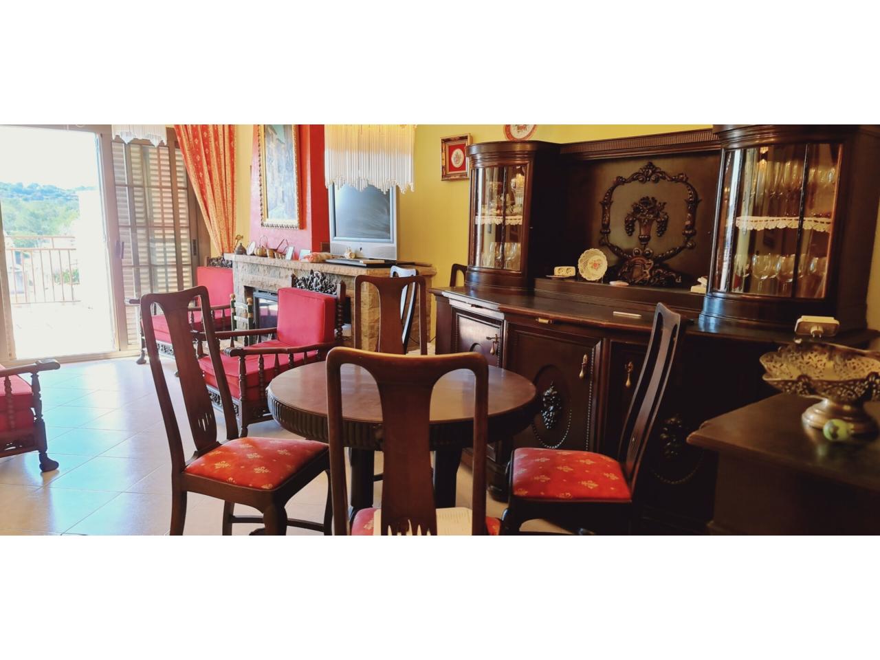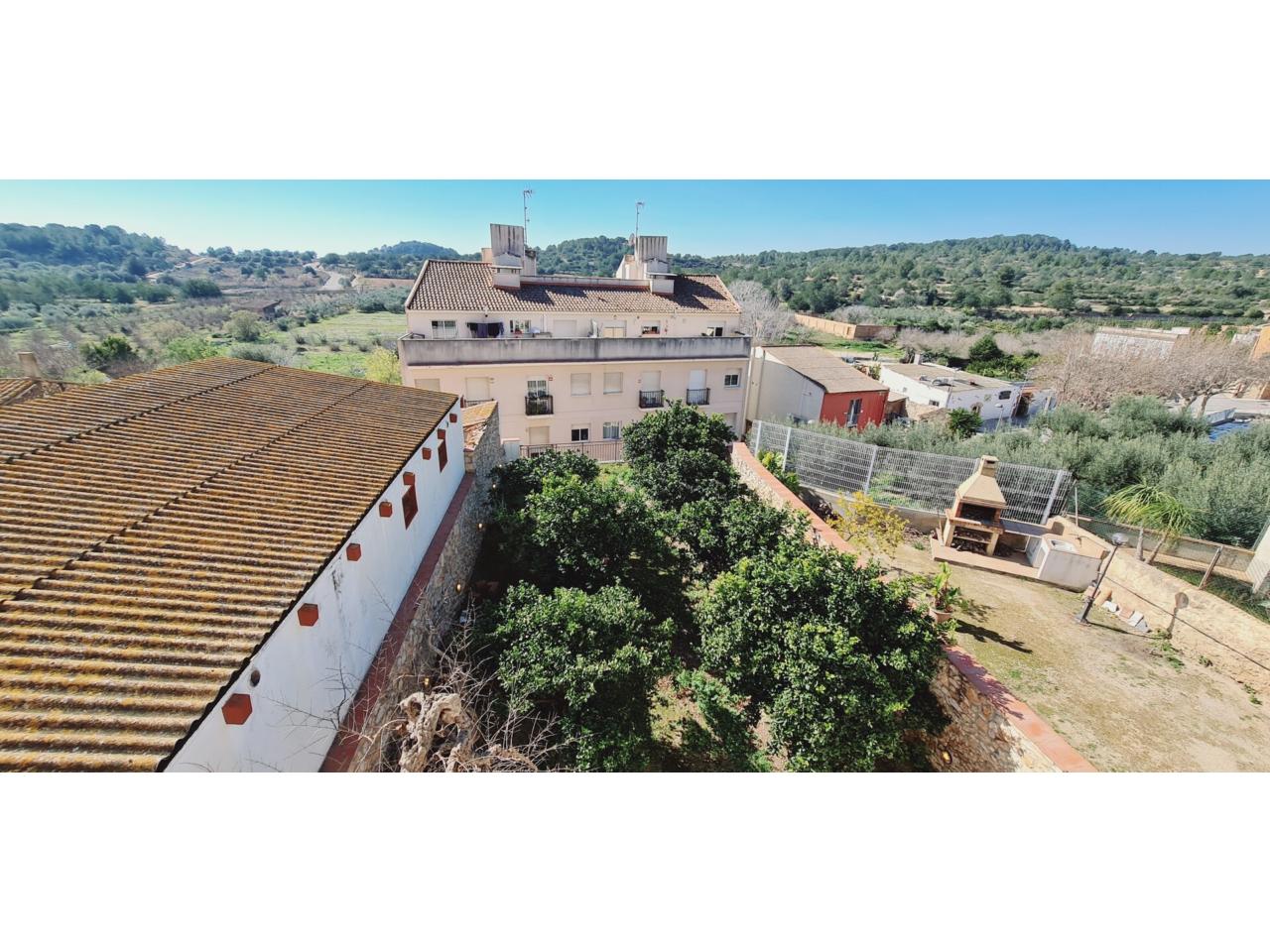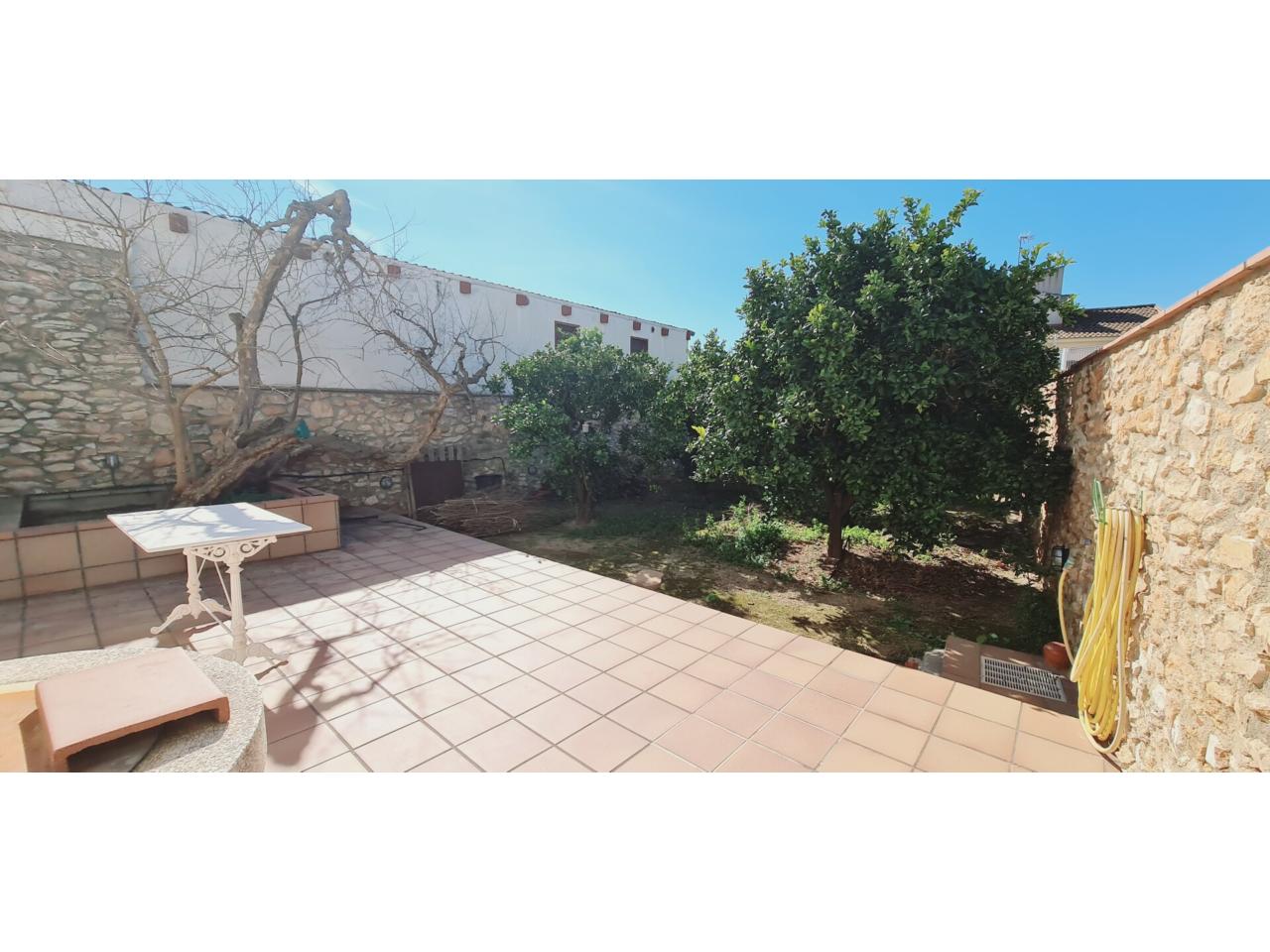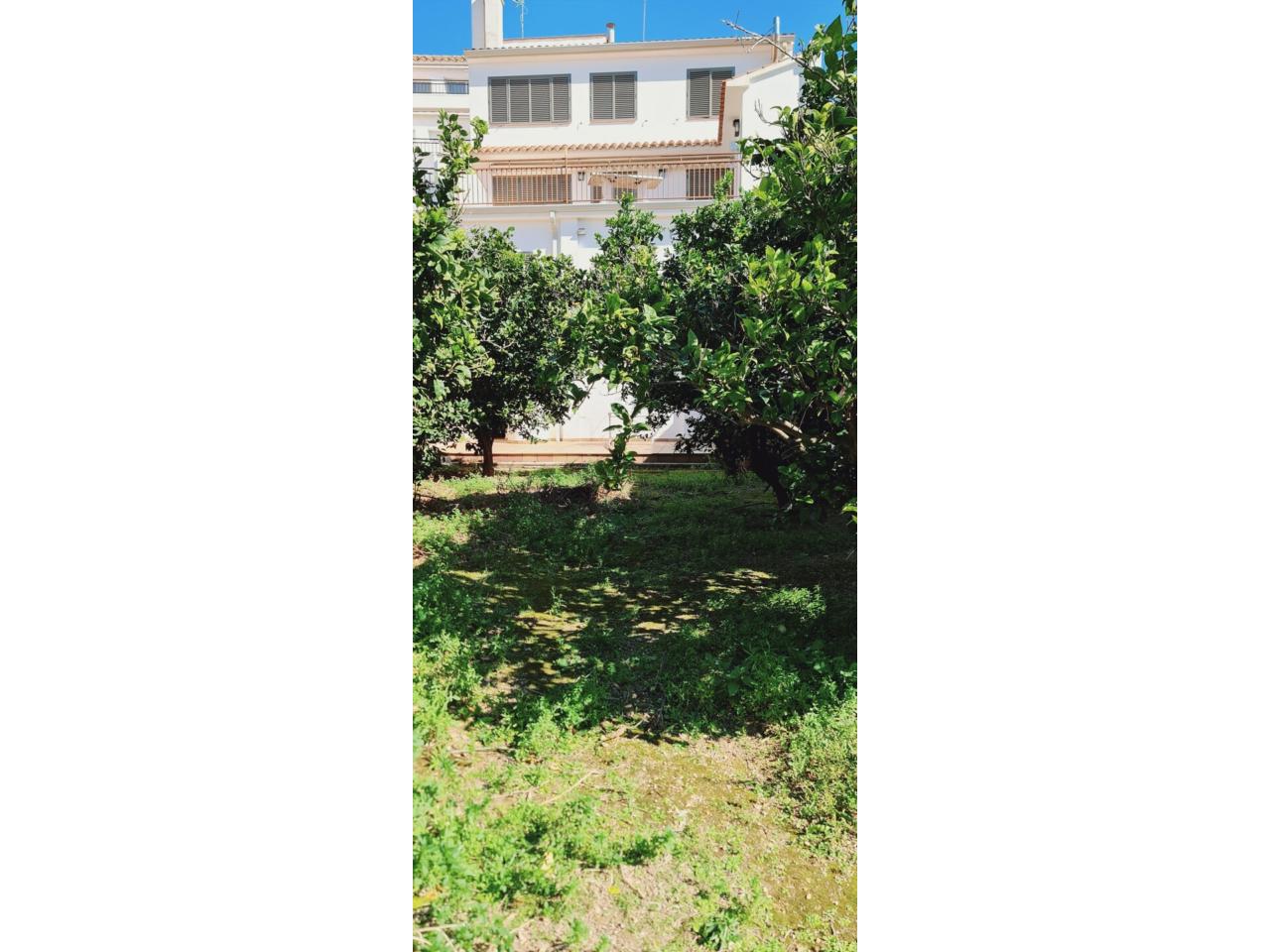 Casa APTA PARA 2 FAMILIAS ( 2 pisos con parking y salas de juegos )en venta en La Pobla de Montornès a 5 minutos del MAR - PLAYA , CASA de 4 plantas CENTRO DEL PUEBLO , La planta baja de la vivienda se compone del vestíbulo de entrada, con acceso a la ESCALERA y al garaje de 40 m2 , desde donde se accede a una sala de estar y a la planta sótano mediante escaleras; desde la sala de estar se accede a una estancia de instalaciones. La superficie construida de la planta baja es de 139,51 m2. garaje para 3 coches de 40 m2 , gran sala- bodega de 36 m2 , sala de máquinas de 36 m2 , respecto a calle a un nivel bajo , se encuentra La planta sótano de la vivienda que tiene salida al jardin de 200 m2 m se compone del distribuidor, cocina de 20 m2 , baño y 2 despensas . Se accede a través de una escalera desde el garaje. La superficie construida de la planta sótano es de 36,10 m2. tiene acceso y salida al precioso jardin de 200 m2 con arboles frutales ( naranjos ) con una zona pavimentada de 36 m2 , tiene en propiedad un pozo propio , de recogida de aguas pluviales , en 1º planta encontrados una vivienda completamente independiente para entrar a vivir , de 109 m2 , consta de 3 habitaciones , 1 baño , cocina comedor de 24 m2 con preciosa chimenea y salida a una gran terraza de 36 m2 ( 2 lavaderos , calefacción en toda la vivienda por radiadores de gasoil , aire acondicionados en toda la vivienda frio-calor) , en la 2º planta , se encuentra otra vivienda completa independiente de 109 m2 , de 3 habitaciones , 1 baño , cocina y comedor ( piso a reformar , si así conviene ) .